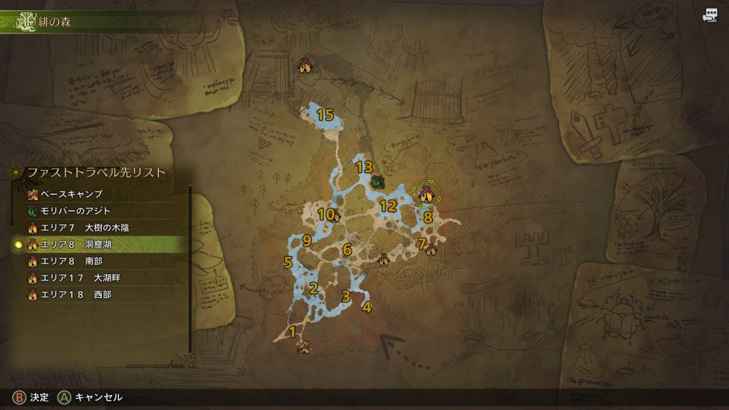 今日は「緋の森」のベースキャンプを拠点にハンター生活をしています