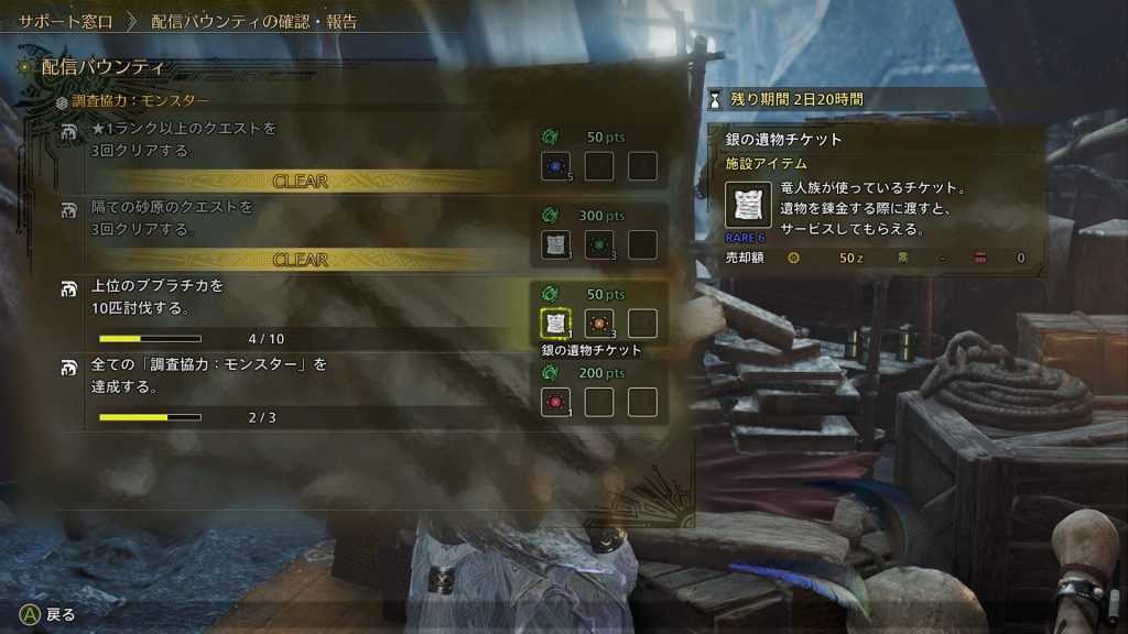 アイスボーンの時は季節のイベントごとに、その時期しか手に入らない装備のチケットなどが