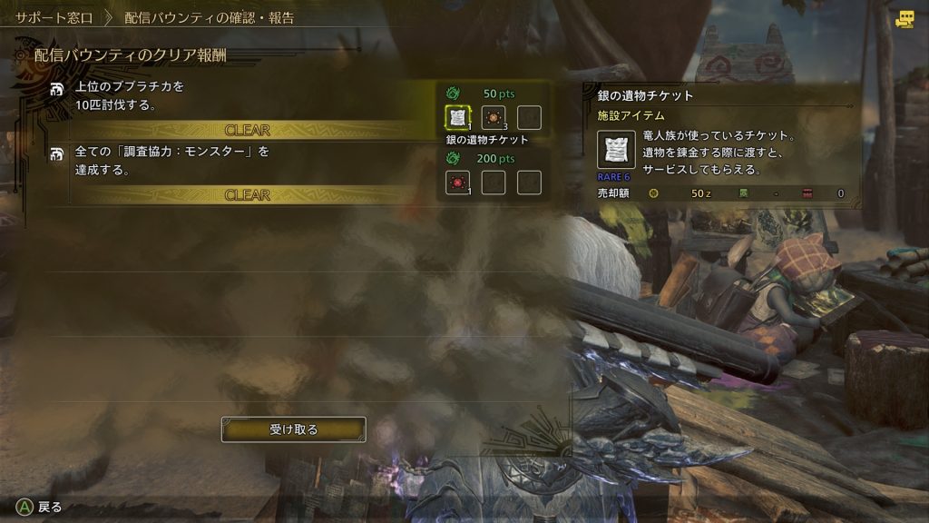 サポート窓口のアイルーに報告をして受け取る必要があります